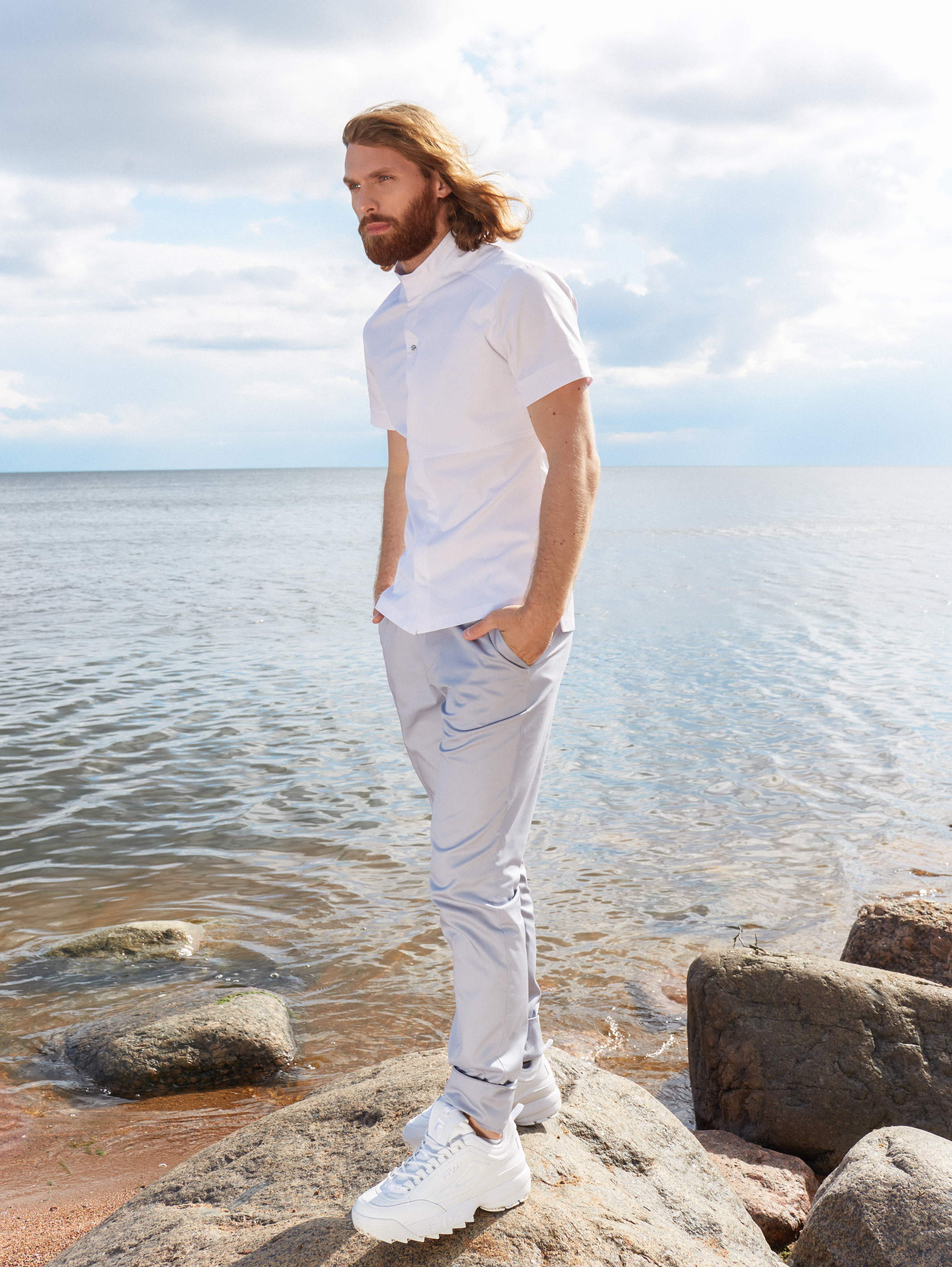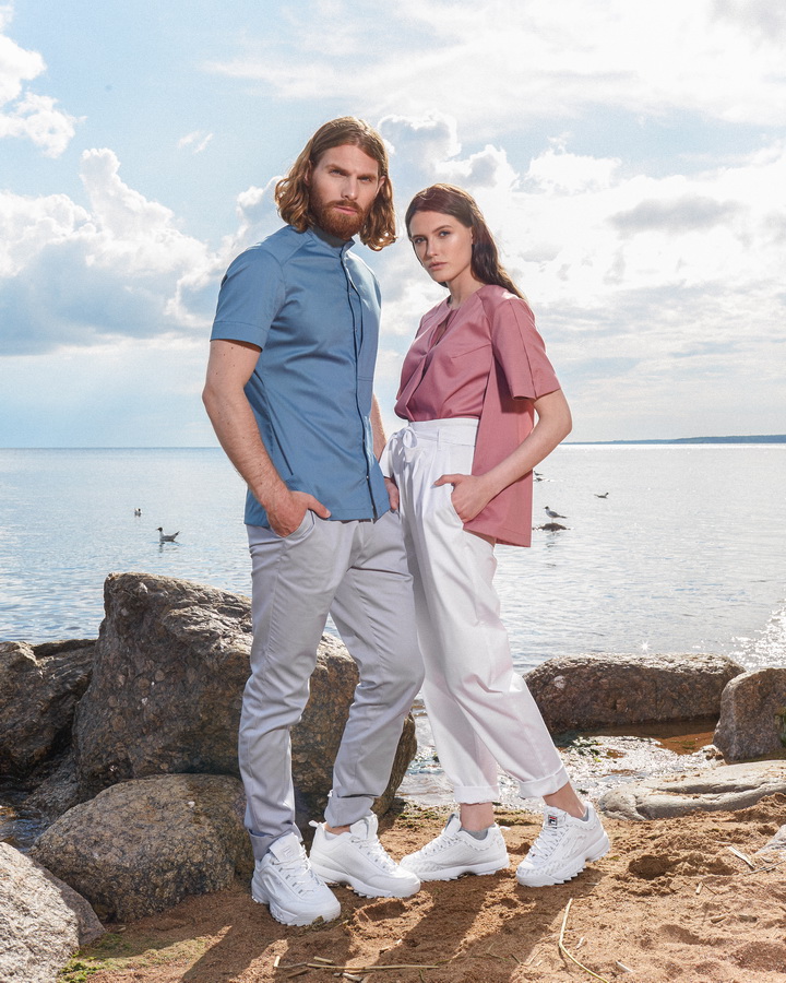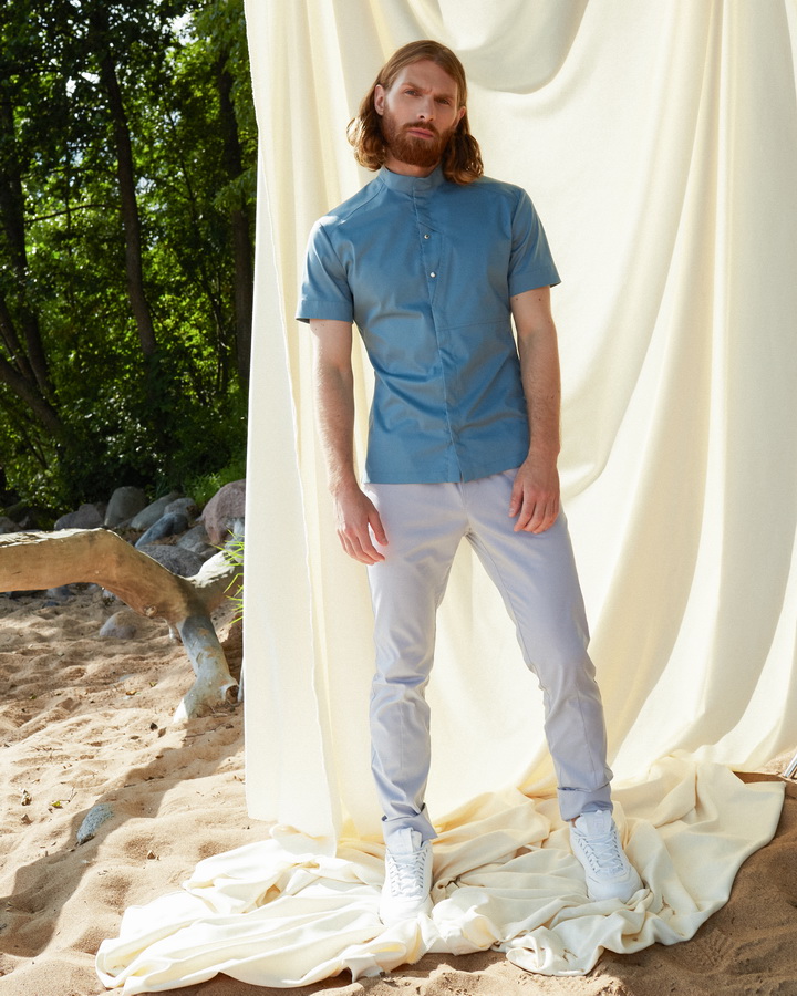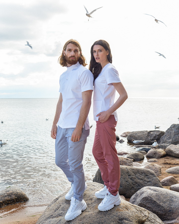 Брюки зауженные книзу с формовой вытачкой на колене. Пояс на резинке и завязках. Карманы передние боковые. Длина полная с возможностью регулировать длину за счет широкой манжеты по низу