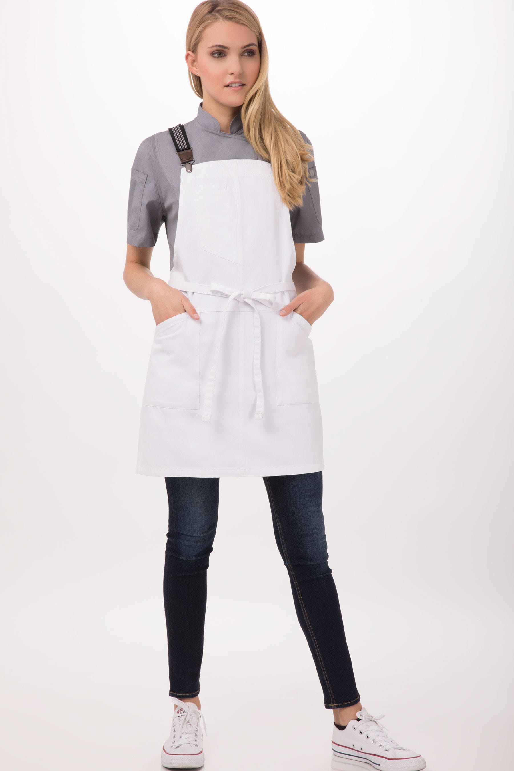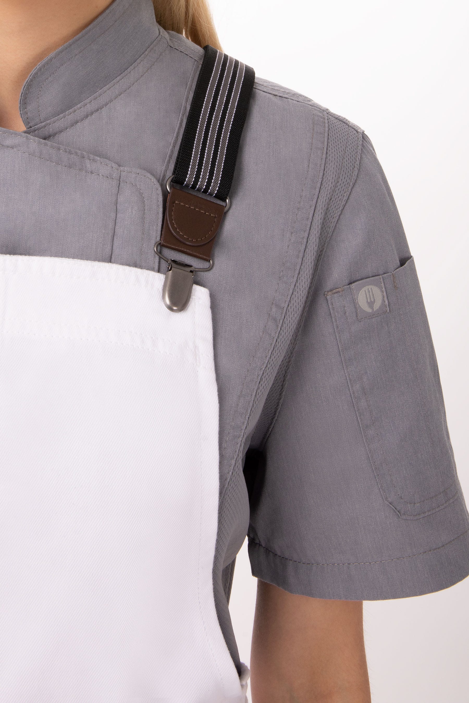 Благодаря замене привычного шейного ремешка на перекрещивающиеся на спине подтяжки, вес фартуков перераспределяется на плечи и спину, что снимает с поваров и официантов значительную часть неизбежной в их работе нагрузки.