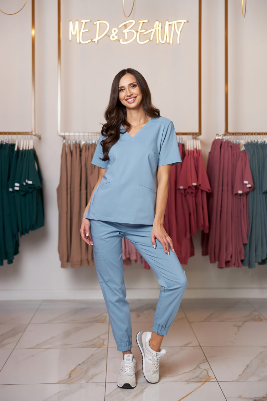Брюки Med&Beauty scrubs Premium джоггеры голубые женские