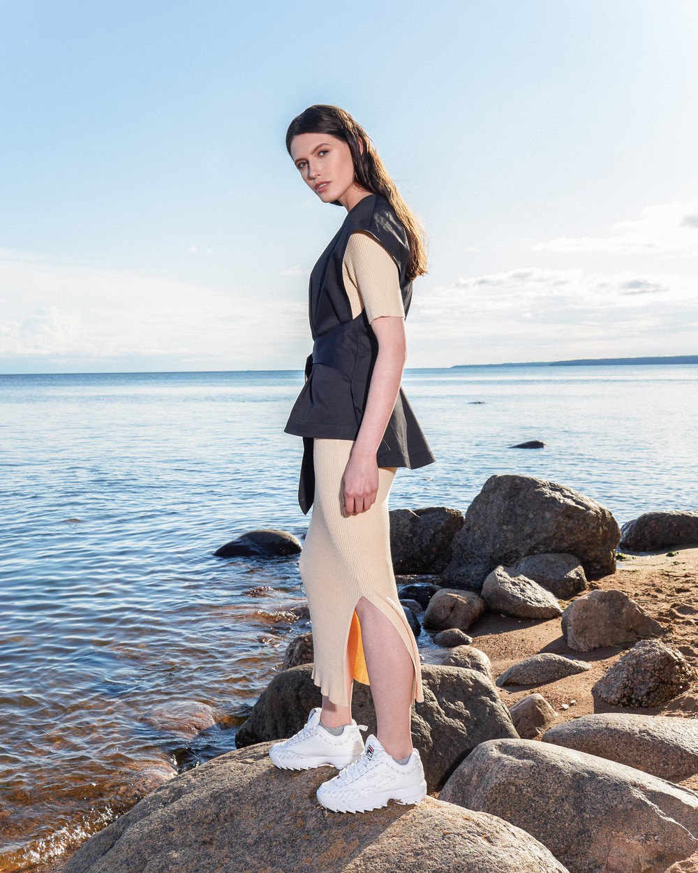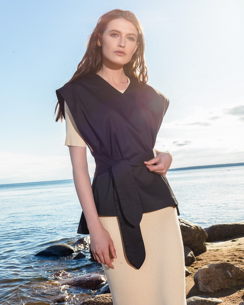 Фартук изумительно сочетается с брюками любой длины и кроя.
