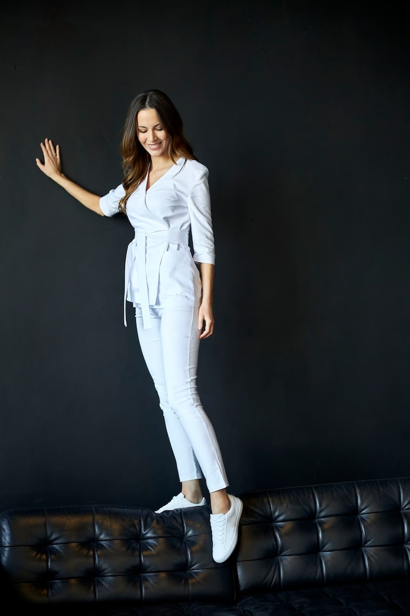 Брюки Med&Beauty scrubs Premium облегающие белые женские